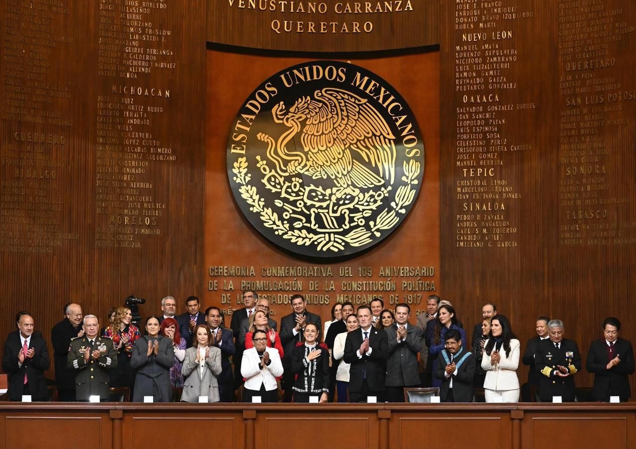 En su mensaje, la presidenta Claudia Sheinbaum hizo un repaso de las reformas constitucionales orientadas a recuperar el sentido social de la Constitución, subrayando que la Cuarta Transformación ha retomado la esencia del proyecto constitucional de 1917, con énfasis en la justicia social y la soberanía nacional.