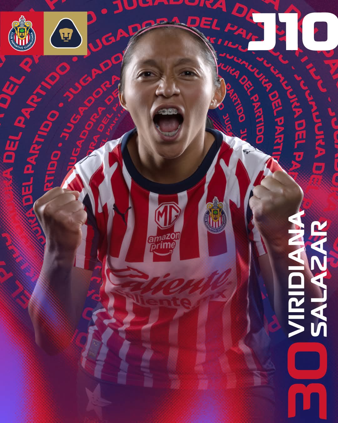 CANCÚN, Q. ROO a 6 de octubre.- Tras una larga sequía ofensiva, que se extendía a lo largo de este semestre, la delantera chetumaleña Viridiana Salazar, fue pieza fundamental en el triunfo 4-3 de las Chivas Rayadas del Guadalajara sobre los Pumas de la Universidad Nacional Autónoma de México (UNAM), ya que la quintanarroense marcó un par de goles en el Estadio “Akron”, en un juego correspondiente a la jornada 14 del Torneo Apertura 2025 de la Liga Femenil BBVA MX.