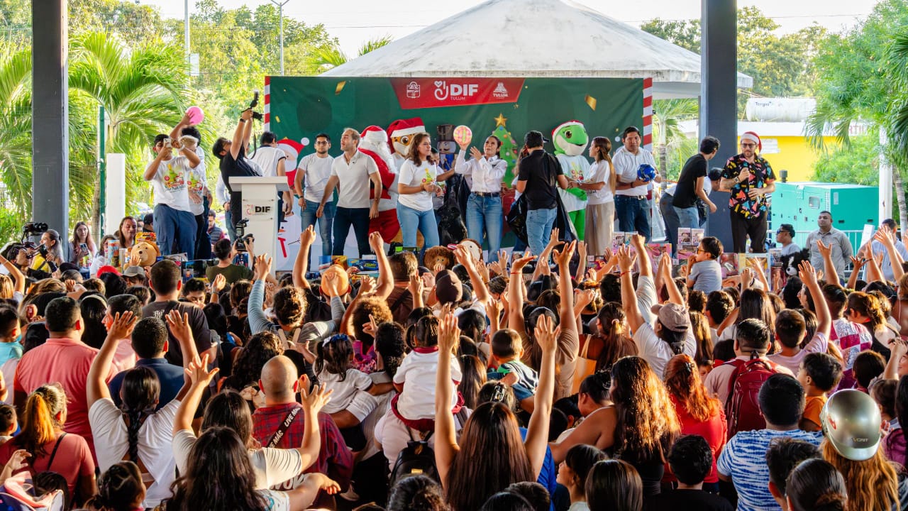 TULUM a 17 de diciembre. – Más de mil 500 niñas y niños de distintas colonias de Tulum participaron en la edición 2025 del Juguetón, una jornada recreativa y de convivencia organizada por el Sistema para el Desarrollo Integral de la Familia (DIF) Municipal en coordinación con el Ayuntamiento de Tulum, realizada en el domo de la colonia Tumben Kaa.