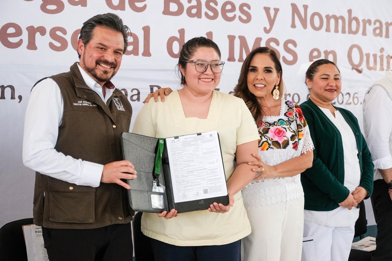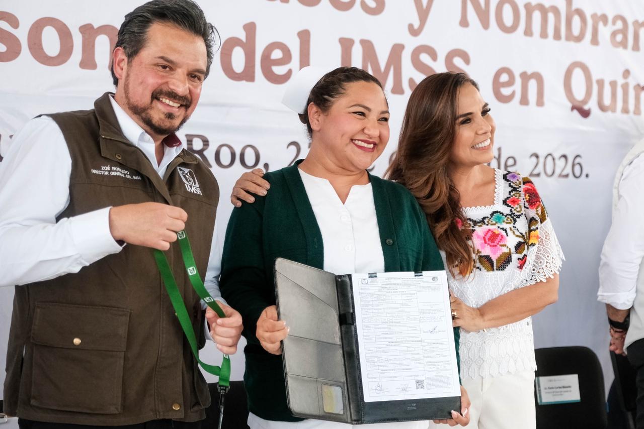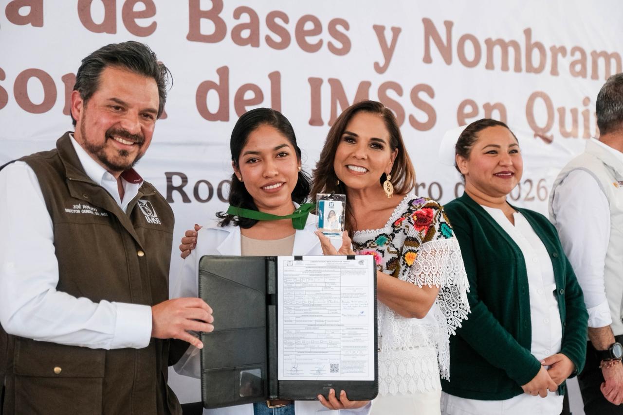 Cancún.- Un total de 71 colaboradoras y colaboradores del Instituto Mexicano del Seguro Social (IMSS) en Quintana Roo recibieron sus bases laborales durante un evento encabezado por la gobernadora Mara Lezama Espinosa y el director general del IMSS, Zoé Robledo.
