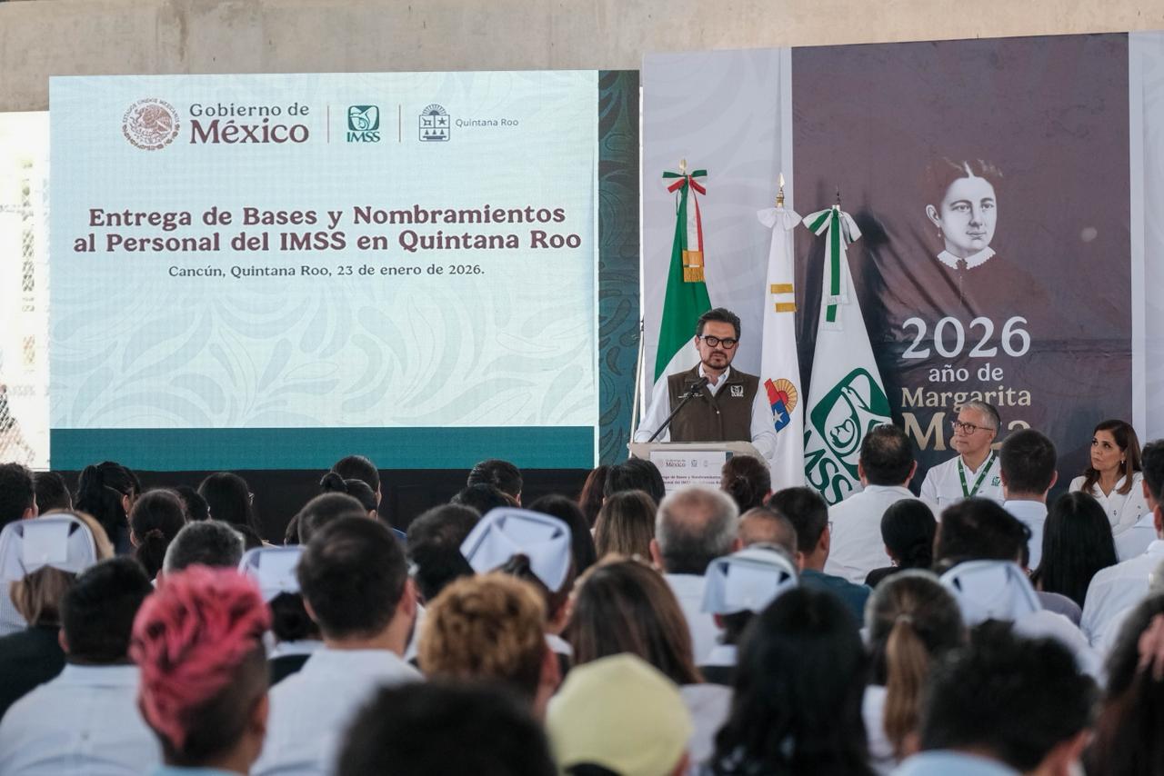 Asimismo, reconoció a las y los trabajadores del IMSS como el corazón del sistema de salud, destacando que cada base representa estabilidad, dignidad y bienestar para sus familias. Reiteró el compromiso del Gobierno del Estado de garantizar mejores condiciones laborales, abasto de medicamentos y una atención médica más humana para las y los quintanarroenses.