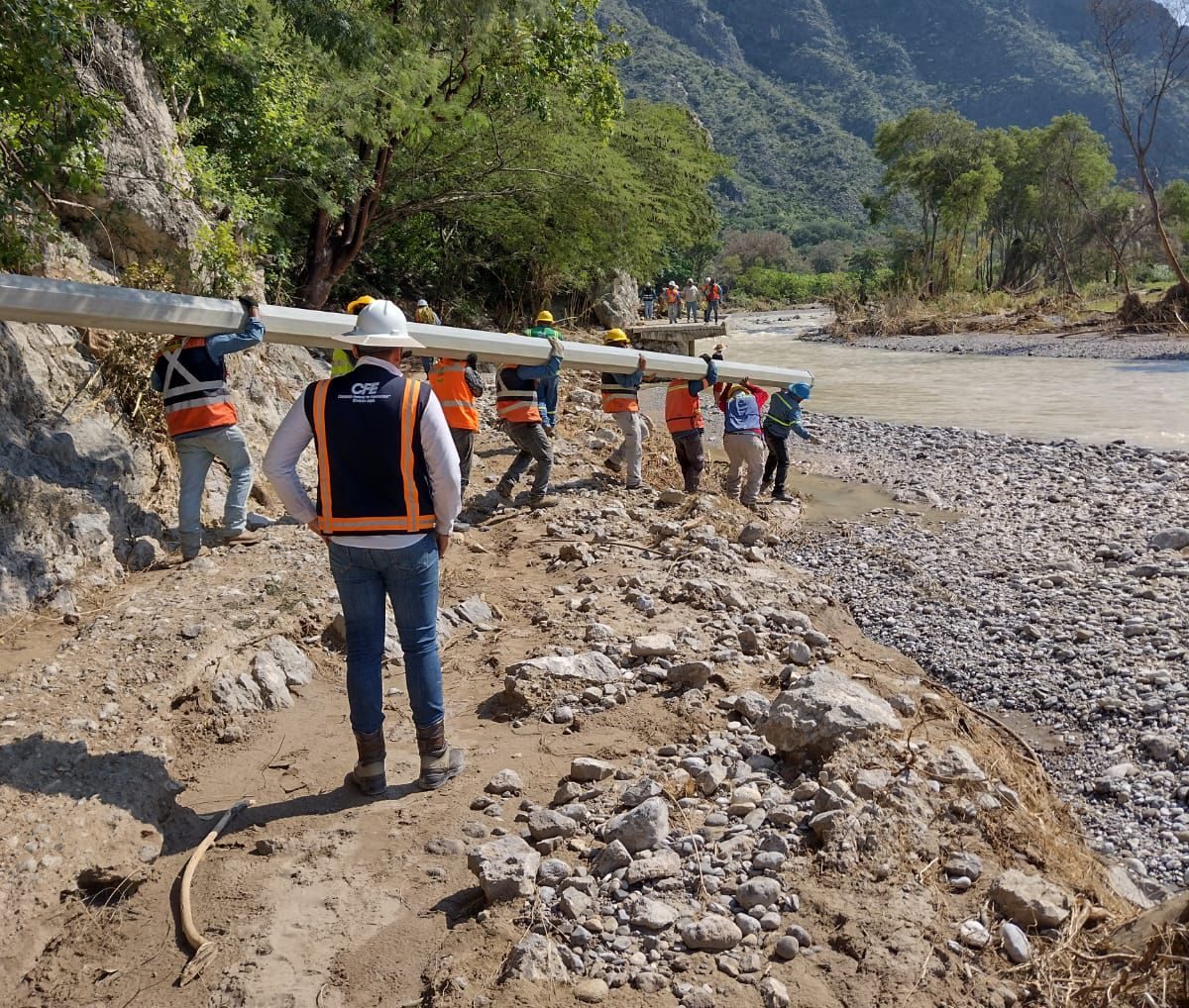 En Hidalgo, personal de la CFE continúa con labores de hincado de postes y tensionado de cable para energizar las redes de media tensión. Por otra parte, en Puebla se ingresó por caminos alternos para realizar reparaciones en media tensión.