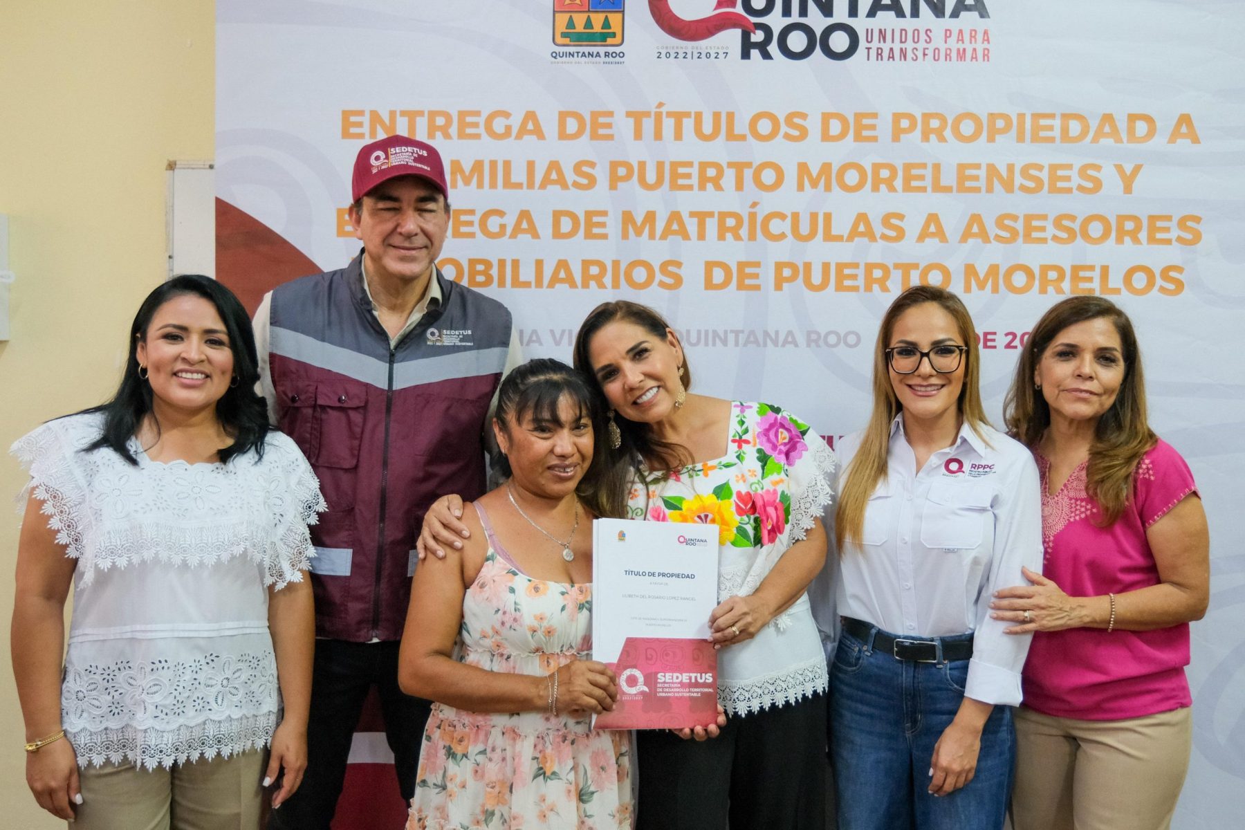 La gobernadora Mara Lezama entregó 5 matrículas a nuevos asesores inmobiliarios del municipio Puerto Morelos, que suman 279 registrados, lo cual permite que la gente que desee comprar un terreno pueda buscar asesoría en ellos y tener la certeza que están comprando de manera legal y orden.
