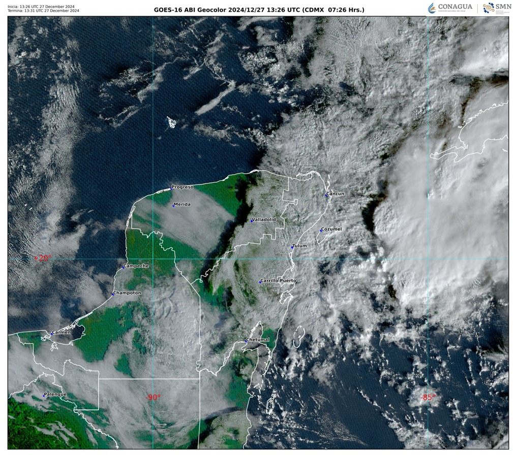 Con base en la sinopsis meteorológica, un canal de baja presión frente a las costas de Quintana Roo, aunado al ingreso de humedad del mar Caribe, originará cielo nublado la mayor parte del día, con probabilidad de lluvias e intervalos de chubascos de 5 a 25 mm, acompañados de actividad eléctrica, sobre la mayor parte del estado.