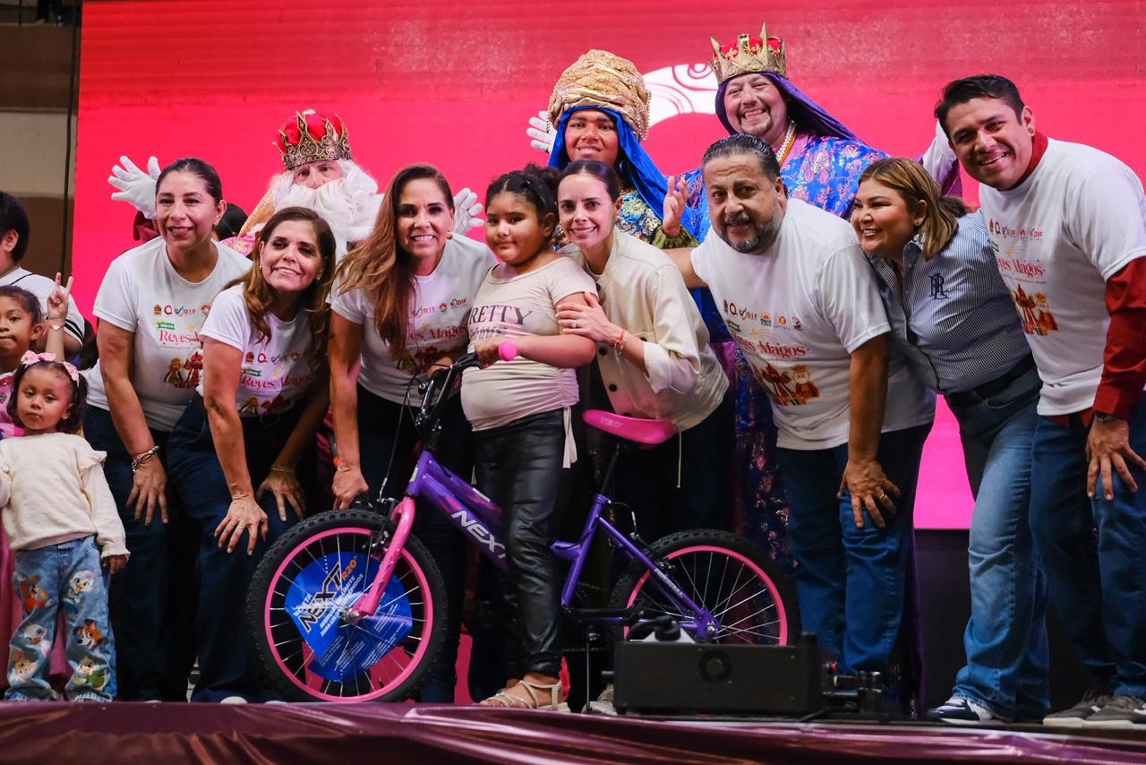 Cancún.- En un ambiente de alegría, convivencia y unión familiar, la gobernadora Mara Lezama Espinosa celebró junto con más de 8 mil 500 niñas, niños y sus familias el Día de los Reyes Magos, con un festival lleno de diversión en la Plaza de Toros de Cancún, donde disfrutaron del show musical infantil de Tatiana, además de botargas, payasos y múltiples sorpresas.