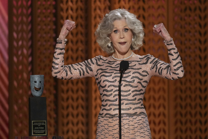 Fonda, de 87 años, recibió el Premio a la Trayectoria del sindicato y proporcionó el momento más político de protesta de la noche. Fonda, una famosa activista, habló indirectamente sobre la administración del presidente Donald Trump.