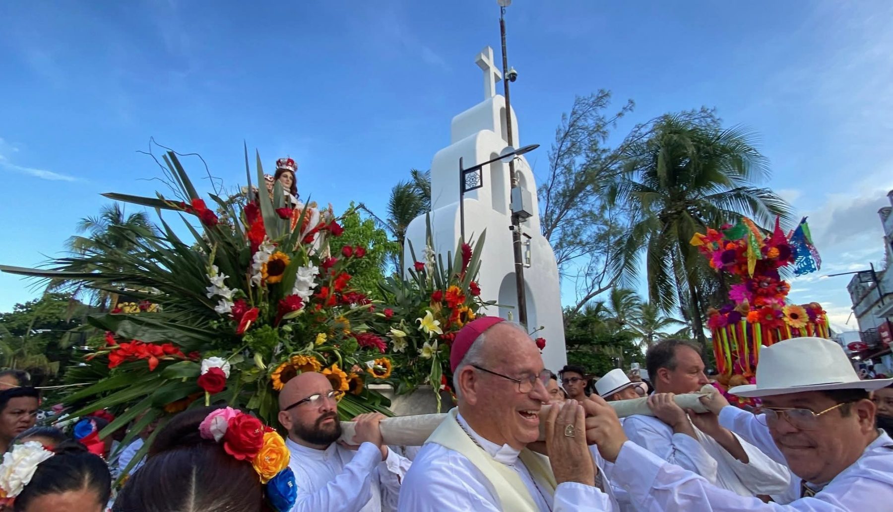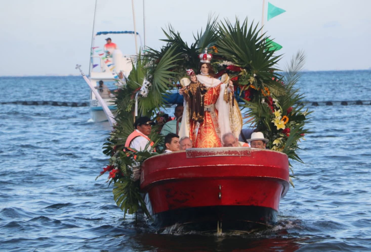Durante el recorrido, la Virgen del Carmen estuvo acompañada de feligreses, turistas, autoridades municipales, integrantes de diversos gremios del municipio y ciudadanos en general, quienes vistieron los tradicionales trajes de la Península de Yucatán.
