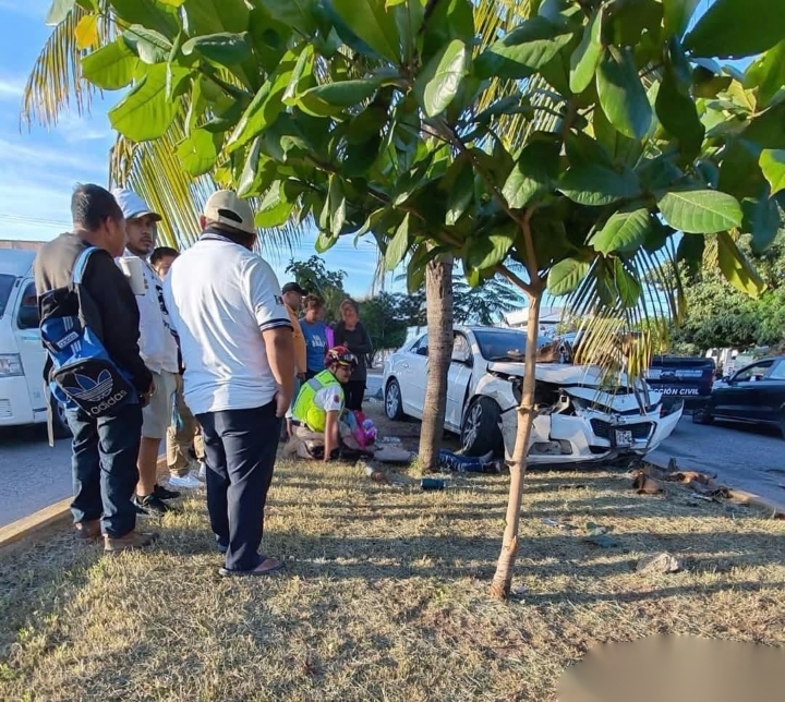 Del impacto, el automóvil Malibú, por inercia, se proyectó contra una palmera a la cual derribo tras subirse al camellón central, y en el trayecto , una mujer fue alcanzada por la unidad, terminando con lesiones de consideración.