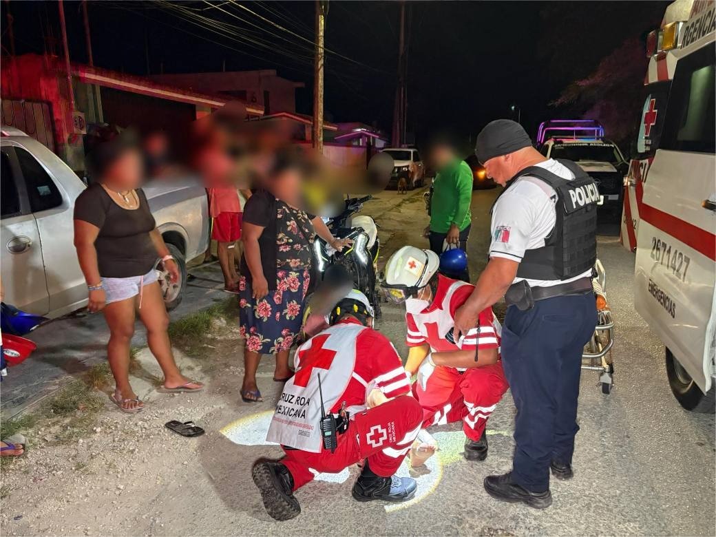 FELIPE CARRILLO PUERTO a 21 de mayo.— Una mujer resultó lesionada con una posible fractura en el pie luego de ser arrollada junto a su hija mientras viajaban en motocicleta, en un accidente ocurrido en la colonia Jesús Martínez Ross. El responsable, quien conducía en presunto estado de ebriedad, intentó huir del lugar pero fue detenido calles más adelante por la policía.