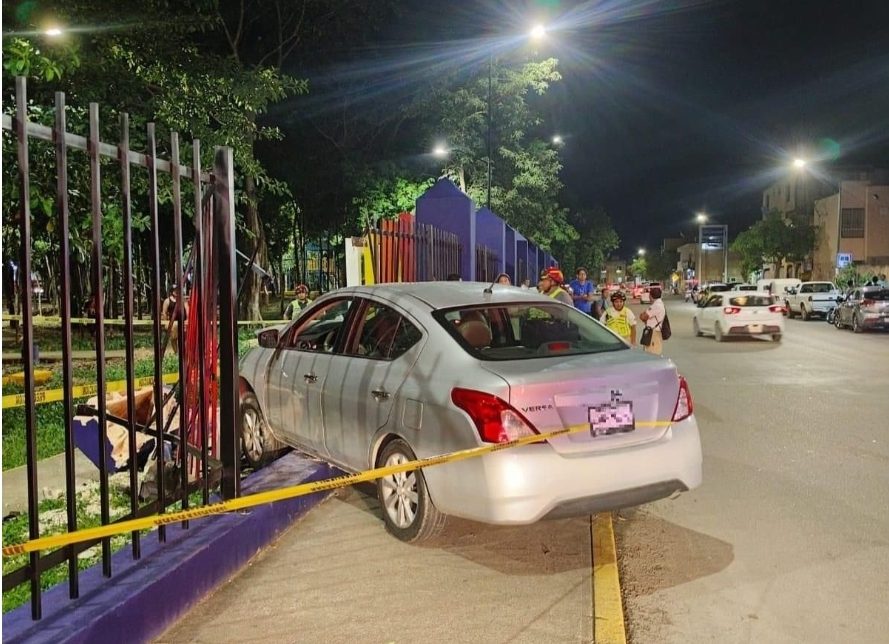 El percance ocurrió a las 11:00 de la noche cuando la unidad Nissan Versa color gris, placas de circulación UTN-240-L, circulaba sobre la avenida CTM, pero al llegar a la intersección de la calle Laak, pierde el control y se estrella contra la barda del mencionado parque.