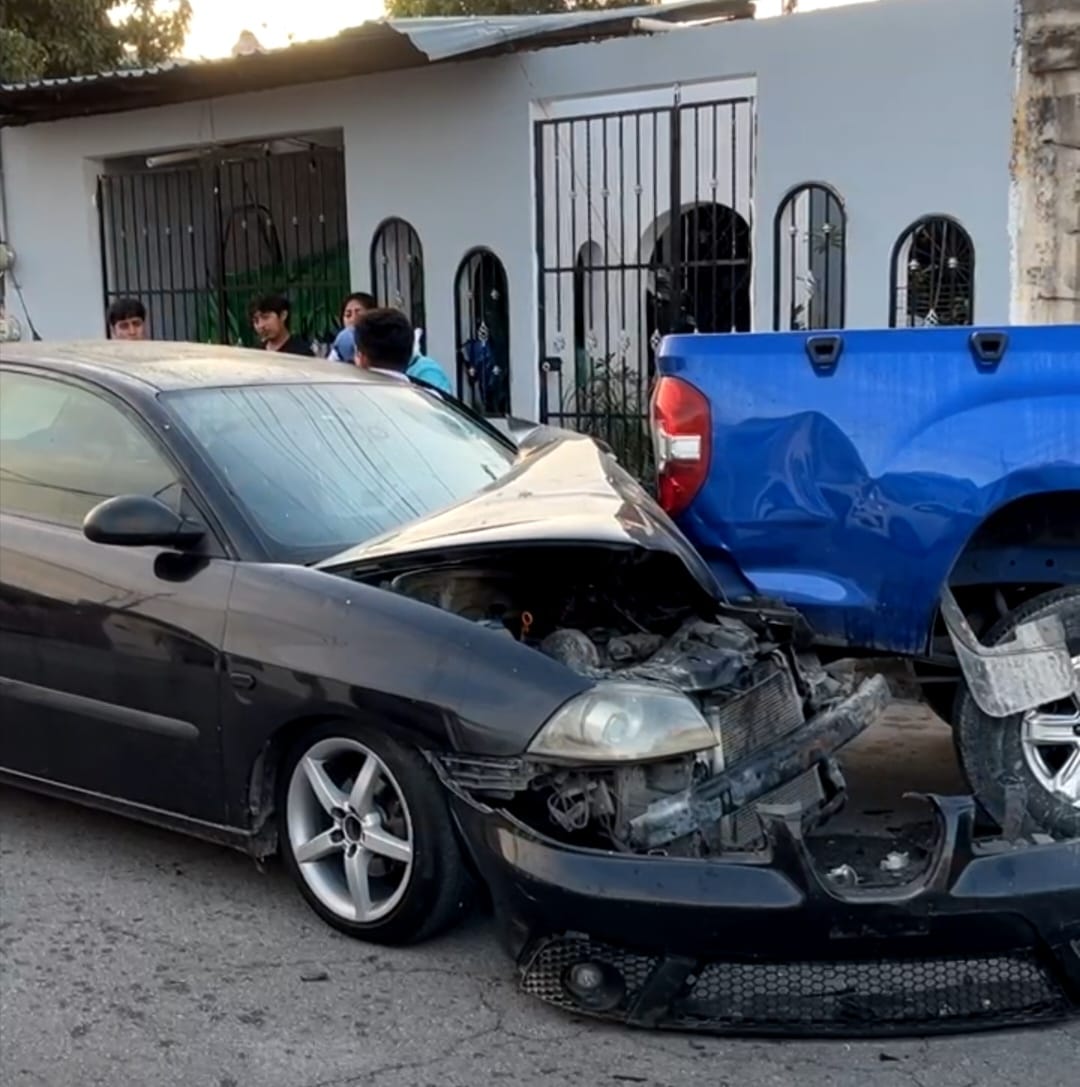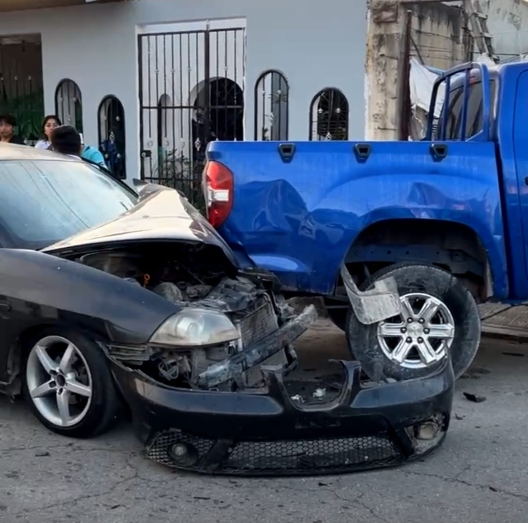 Cancún, 23 de febrero.- Un aparatoso accidente de tránsito ocurrió en la Supermanzana 103, en la calle 46 con avenida 149, cuando un vehículo negro se impactó contra una camioneta que estaba estacionada.