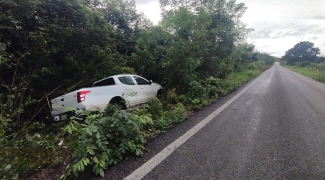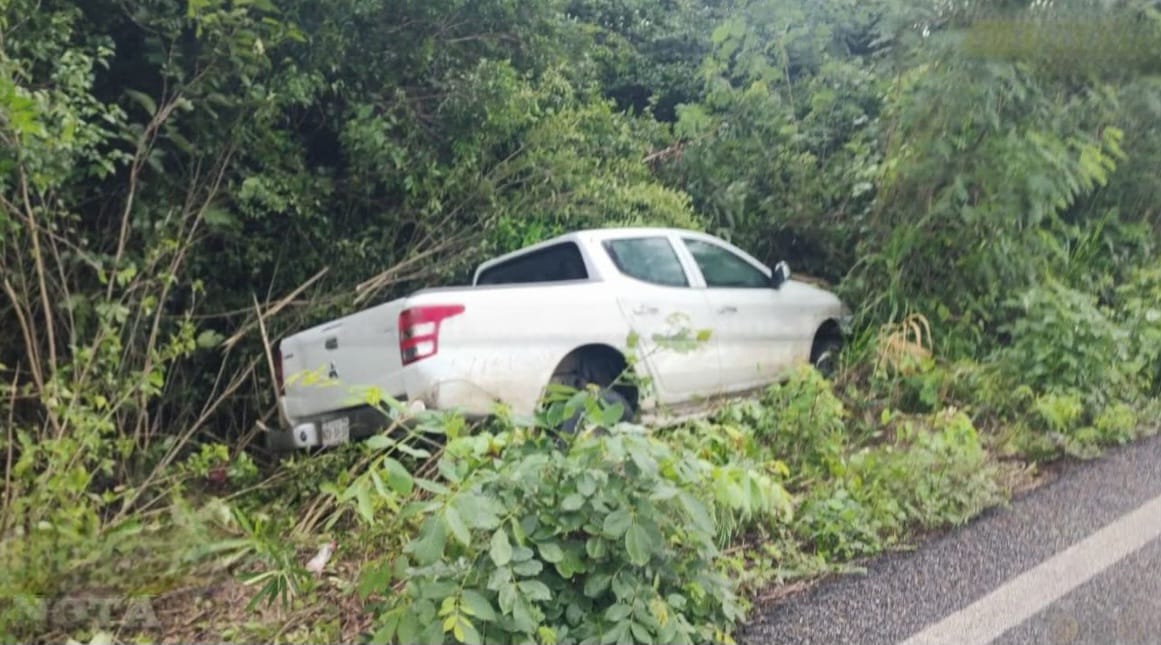 Conductor Pierde el Control de su Camioneta y Termina Entre la Maleza en Felipe Carrillo Puerto