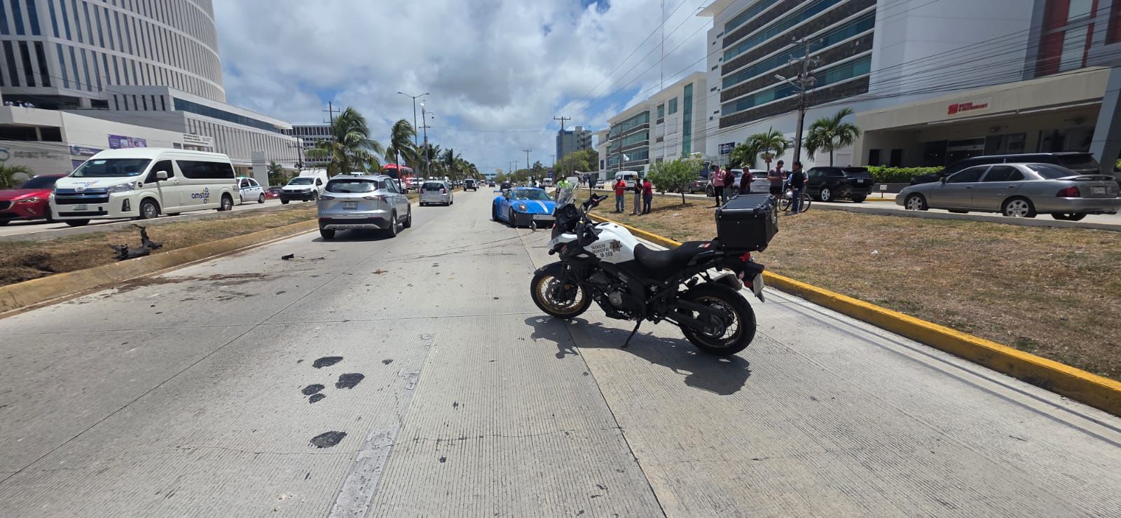 Cancún, 21 de mayo. — Un vehículo deportivo de alta gama protagonizó un accidente este miércoles por la tarde sobre el bulevar Luis Donaldo Colosio, frente al hospital Galenia, en la Supermanzana 16 de Cancún.