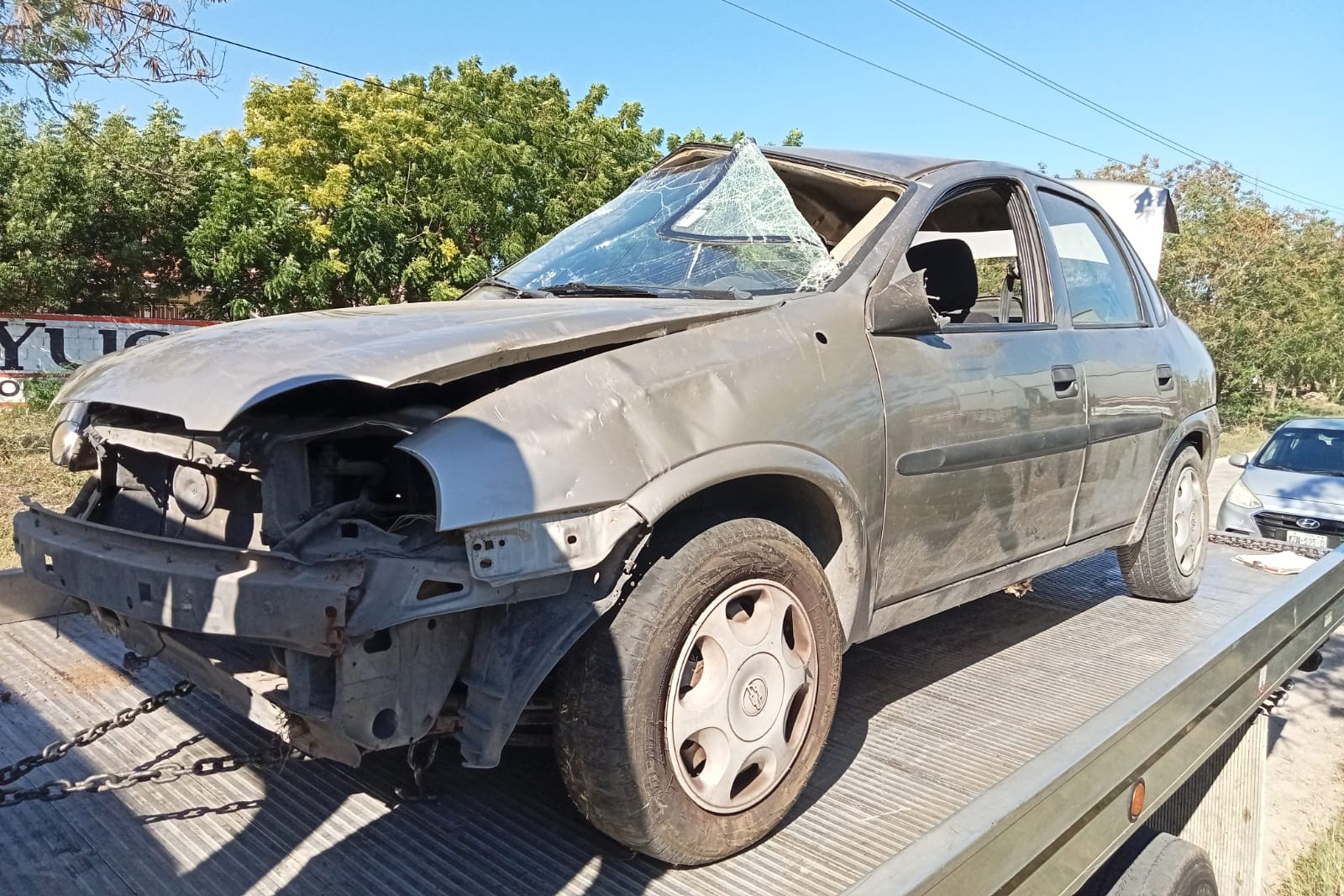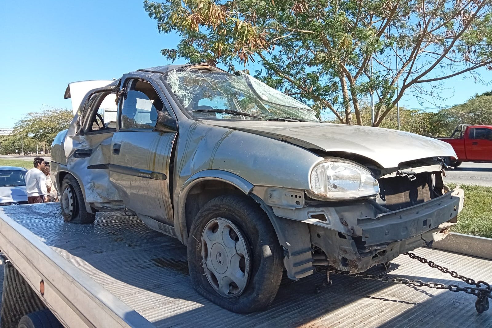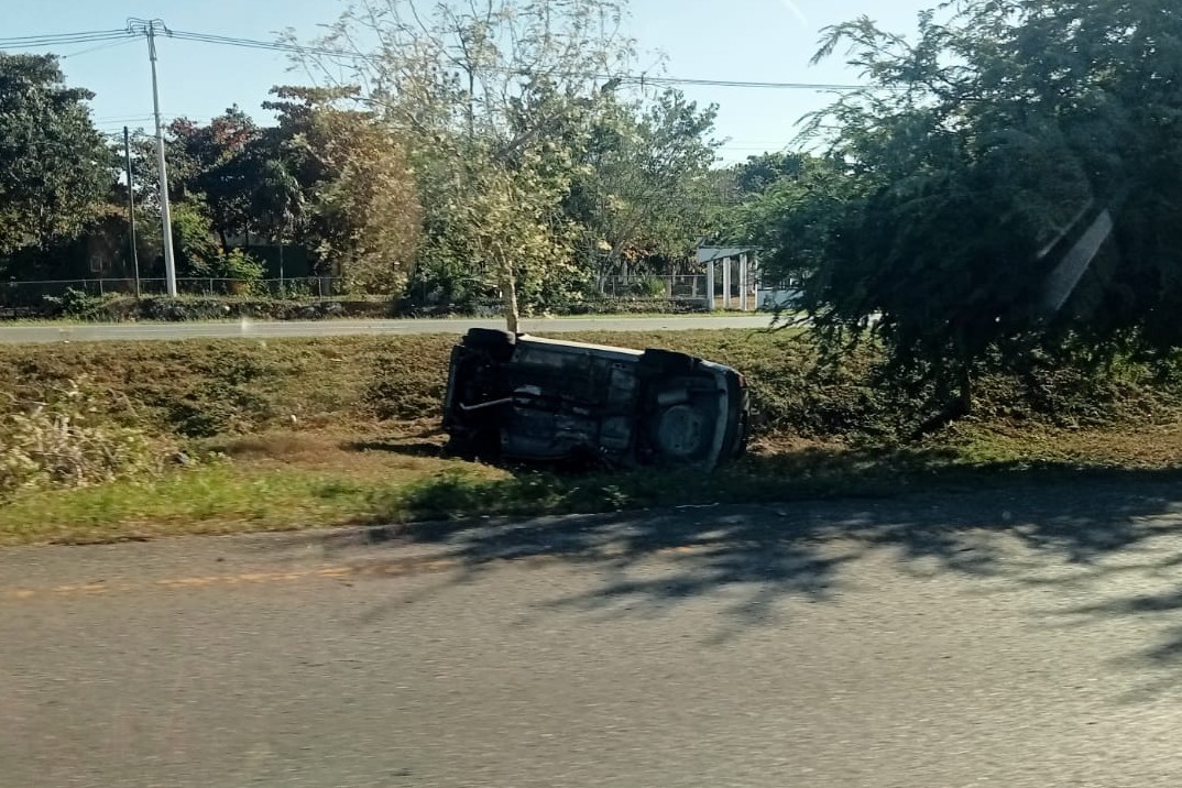 Debido al impacto contra el árbol es que acaba volcado sobre su costado izquierdo, afortunadamente como tenía el cinturón de seguridad puesto y las bolsas de aire se activaron por lo que solo presentó golpes leves, nada que pusiera en peligro su vida, sin embargo fue valorado por paramédicos de la SSP.