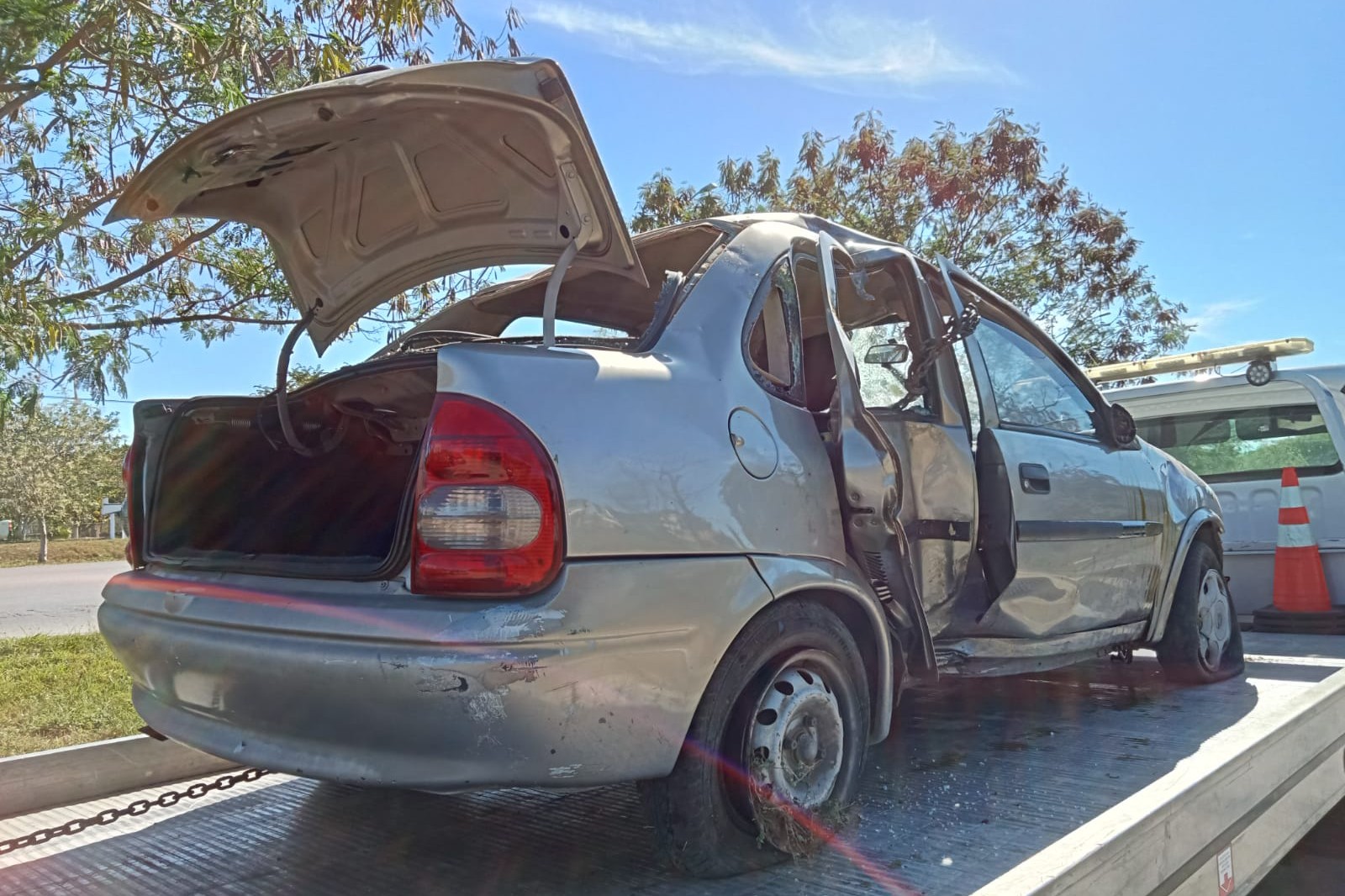MÉRIDA, YUC., 10 de enero.- Joven al frente de un auto Monza presuntamente alcoholizado transitaba sobre el periférico oriente de la ciudad de Mérida pero a la altura del kilómetro 23 de la vía interior, antes de subir el puente con entronque a la comisaría meridana de Chichí Suárez, debido a que iba a exceso de velocidad y estaba en una curva, pierde el control del volante y se sale de la carpeta asfáltica.