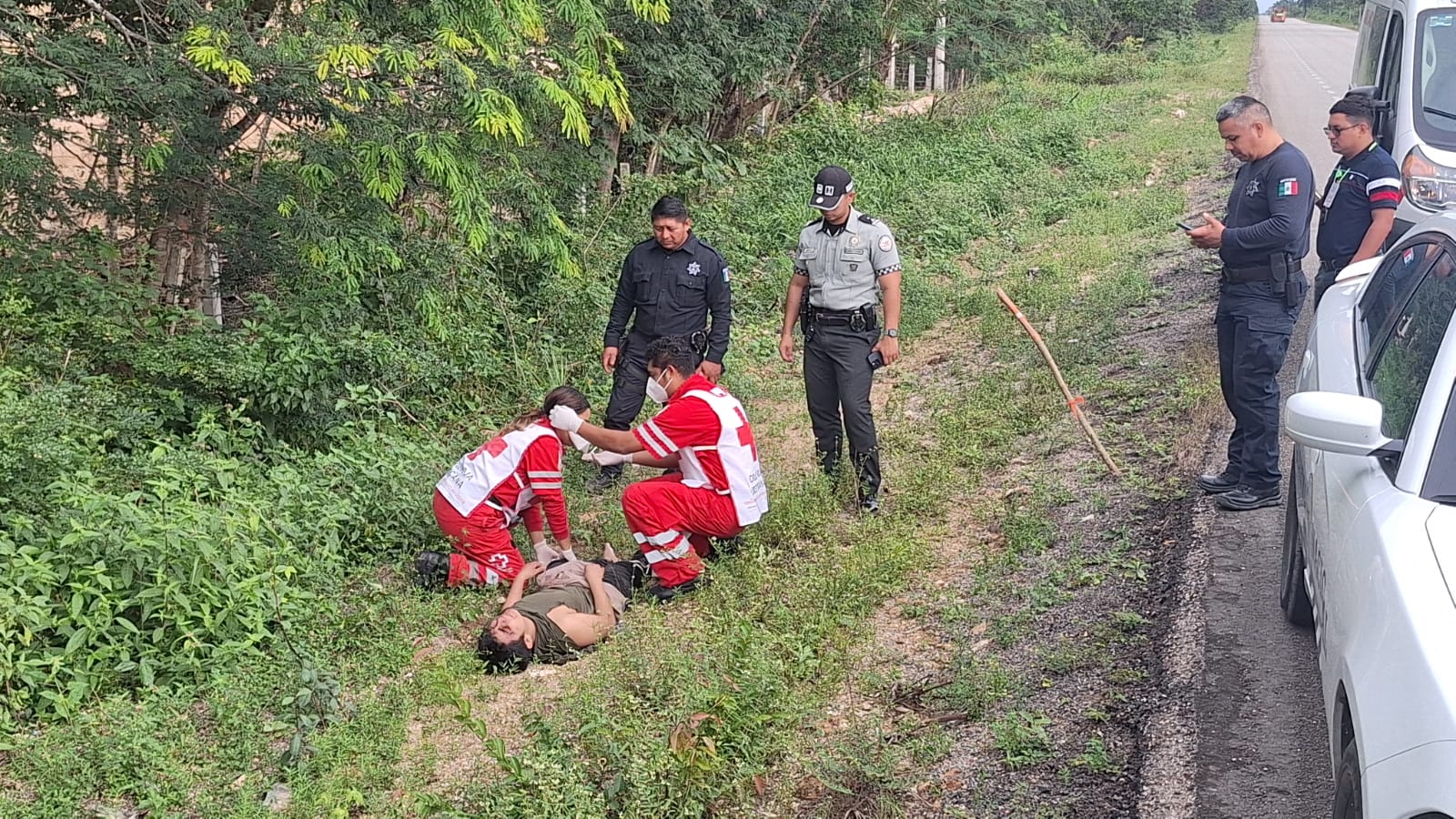El accidente se reportó minutos antes de las 10:00 horas al número de emergencias, movilizando a paramédicos de la Cruz Roja, elementos de la Policía Municipal de Felipe Carrillo Puerto y de la Guardia Nacional división Caminos. Al llegar al lugar, los paramédicos brindaron primeros auxilios al joven, quien fue trasladado al Hospital General de Felipe Carrillo Puerto para una mejor atención médica.