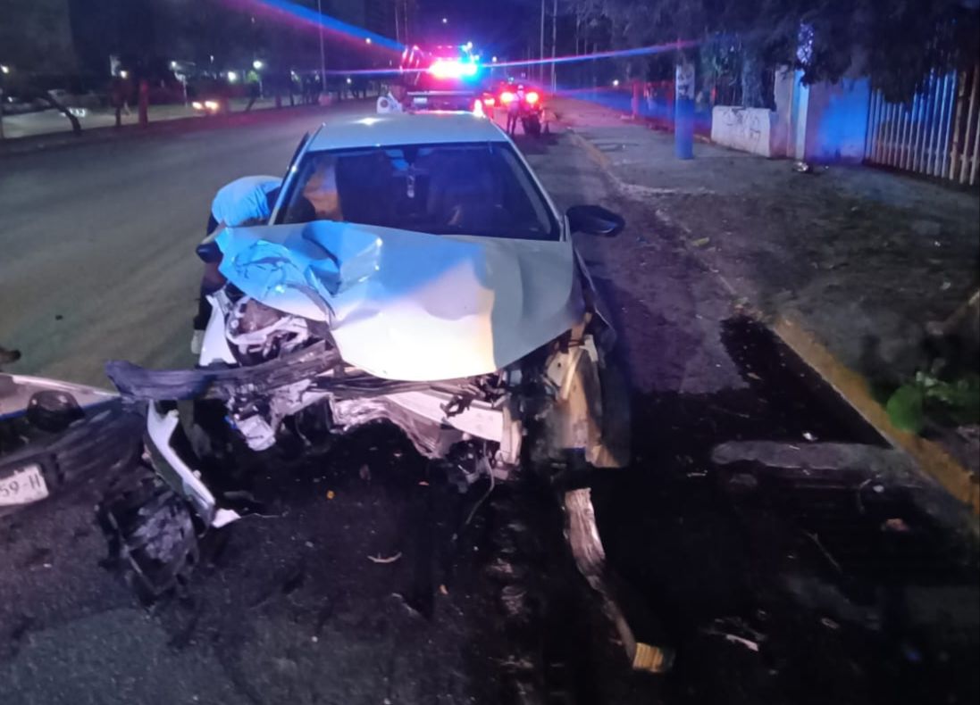 CANCÚN, 19 de marzo. – En la madrugada de este miércoles, se registró un accidente de tránsito en la avenida Bonampak a la altura de la Supermanzana 1, cuando un Chevrolet Onix blanco, en dirección de norte a sur (ruta Cancún – Aeropuerto), perdió el control debido a la inadecuada consideración de las condiciones tanto de la vía como del conductor.