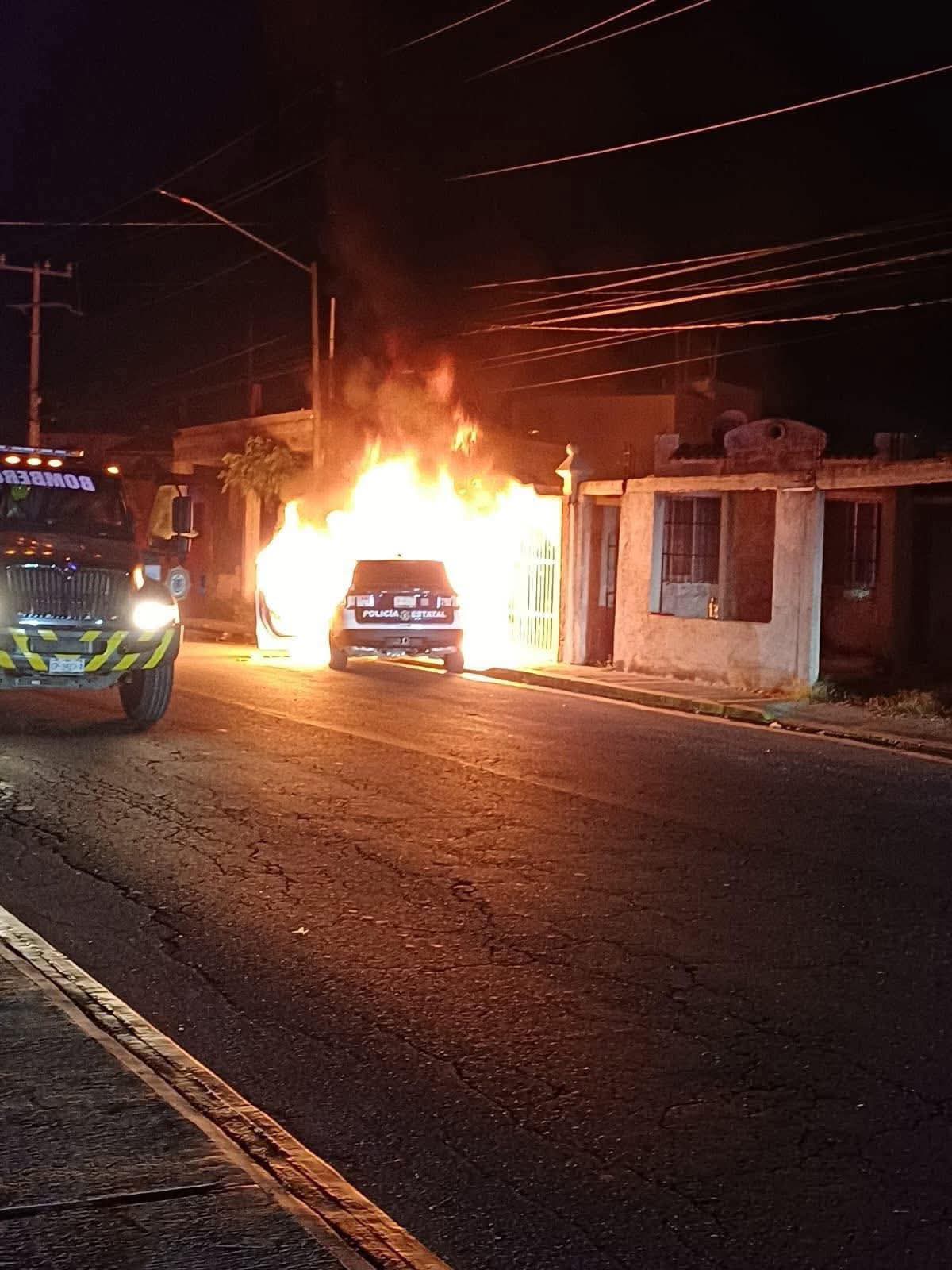 La patrulla chocó contra poste de CFE y se incendió alrededor de las 3:44 de la madrugada de este sábado 25 en la Avenida Benito Juárez, en Campeche capital.