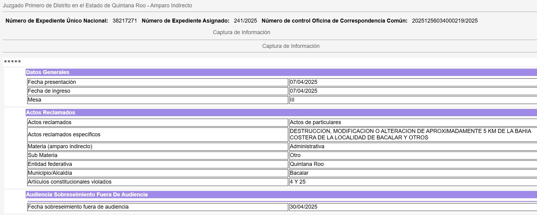 Confirma Tribunal que Ciudadanos de Bacalar se Desistieron de la Primera Demanda de Amparo Contra Obra de la Sedena en Bacalar