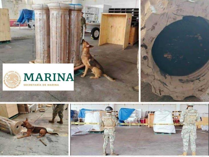 Elementos de la Secretaría de Marina Armada de México (Semar) asestaron un duro golpe al crimen organizado al asegurar en la aduana del puerto de Veracruz, más de media tonelada de mariguana que estaba oculta en columnas de piedra de cantera.