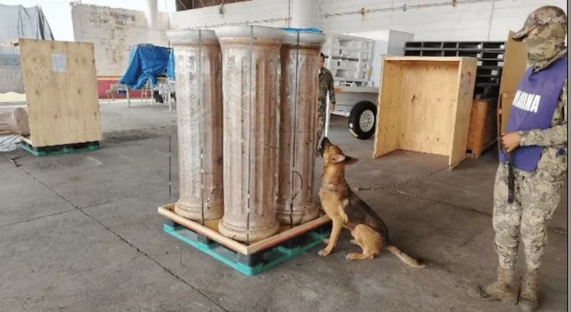 La institución destacó que el aseguramiento de la presunta droga se logró dentro de la Cesionaria de Corporación Integral de Comercio Exterior (CICE) tras una revisión, con apoyo de perros detectores de enervantes, que de inmediato al inspeccionar varias columnas de piedra de cantera comenzaron a ladrar, como señal de que en varias columnas se encontraban sustancias ilícitas.