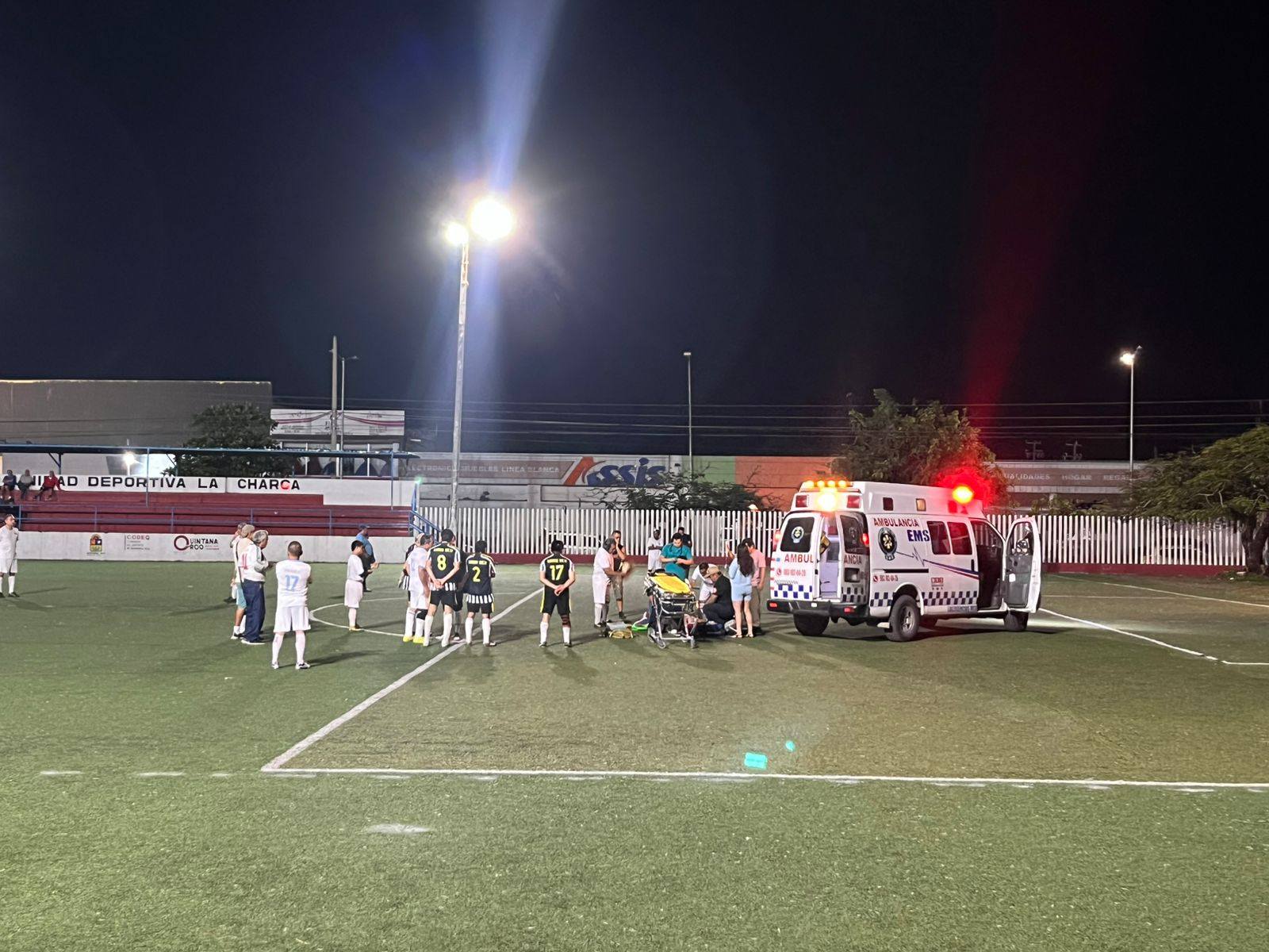 CHETUMAL, 18 de diciembre.- Un exjugador profesional que se encontraba participando en un partido nocturno de fútbol perdió la vida tras sufrir un “encontronazo” con otro jugador, en la Unidad Deportiva La Charca, en la colonia 8 de Octubre de Chetumal.