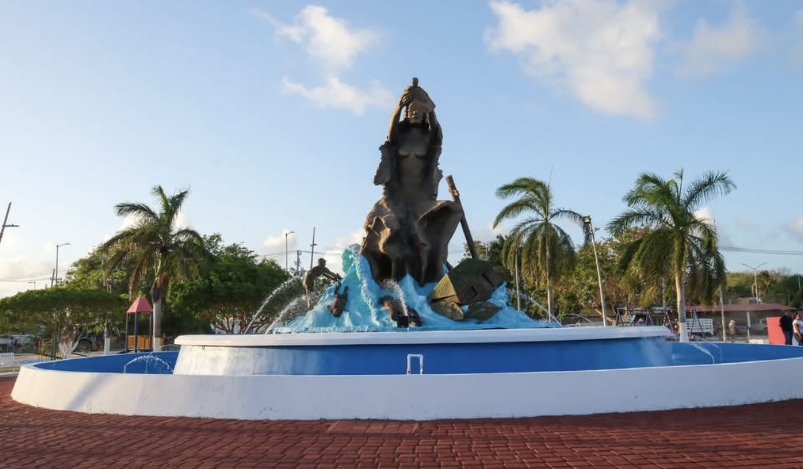 Esta importante estatua, fue develada en abril de 1975 a la entrada de Chetumal, pero cuando se hicieron los trabajos de construcción del puente y la desviación, así como la ampliación de la entrada, perdió visibilidad desde hace muchos y fue lo que derivó en su abandono.