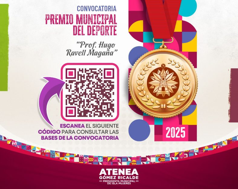Isla Mujeres, Quintana Roo a 02 de octubre de 2025.-El Gobierno Municipal que encabeza la alcaldesa Atenea Gómez Ricalde, invita a las isleñas e isleños a inscribirse o postular a sus candidatos al Premio Municipal del Deporte “Profesor Hugo Ravell Magaña”.