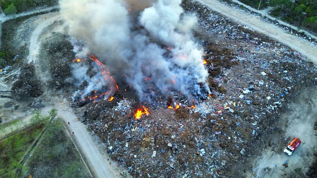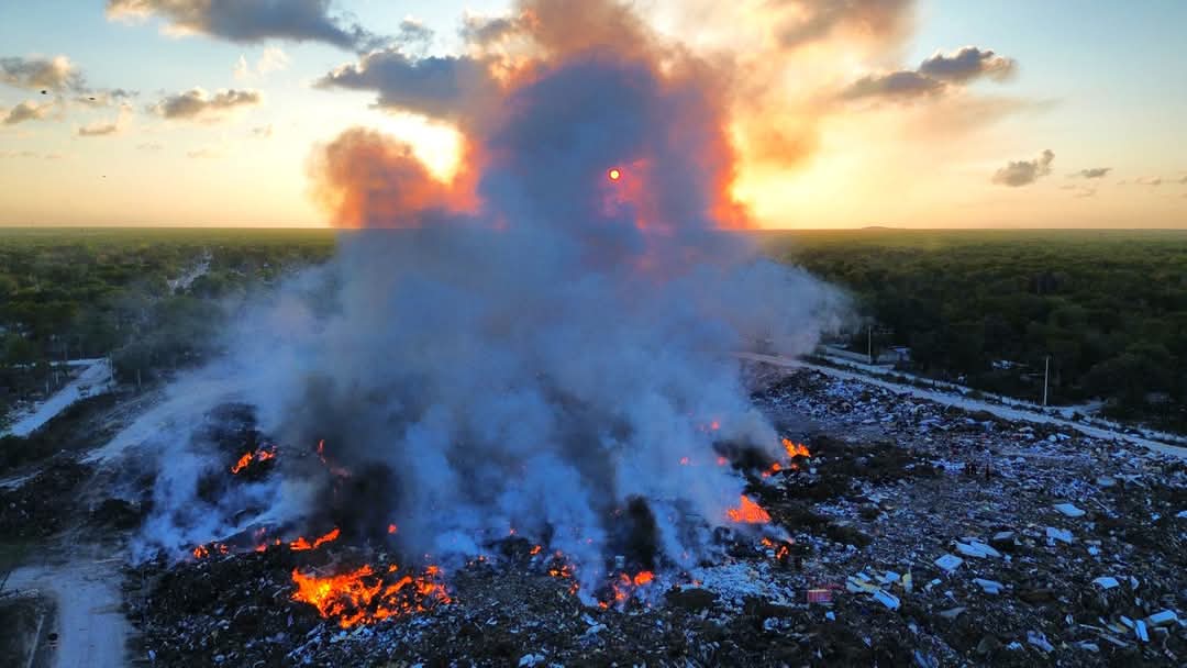 Continúa Activo Incendio en el Antiguo Basurero de Cancún; Autoridades Trabajan en su Control