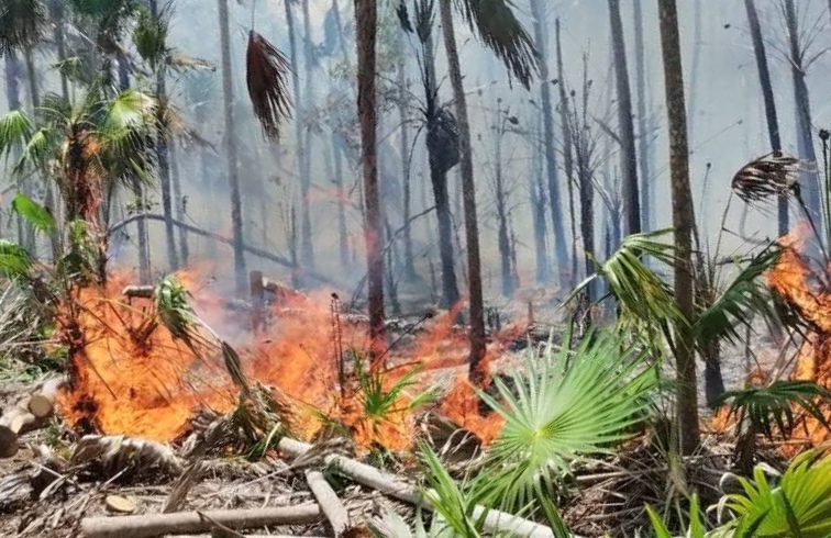 A pesar del despliegue de personal de Conafor, Conanp, Marina y Bomberos, quienes abrieron brechas corta fuego de más de un kilómetro, el incendio sigue extendiéndose, favorecido por la presencia de palma de chit que facilita la propagación de las llamas.
