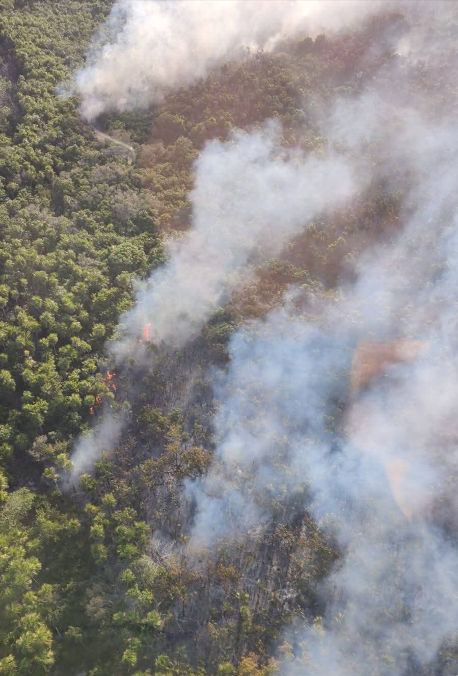 Fuentes locales indicaron que el fuego permanece fuera de control, con al menos 10 fumarolas visibles, especialmente por la noche, a pesar de las lluvias continuas registradas la semana pasada.
