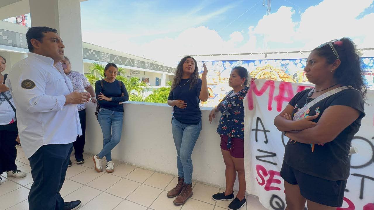 Ayer miércoles se presentaron ante la puerta de presidencia un grupo de madres de familia exigieron que la presidenta Estefanía Mercado las escuche, así como ellas la escucharon cuando estaba en campaña. En lugar de ella, fueron atendidas por el secretario de Gobierno en su despacho. Durante la reunión, Darwin Aguilar, supuesto secretario de gobierno en Playa del Carmen anunció a las mamás que se realizó el cambio, y que el mismo miércoles abrirá el portón para el inicio de clases.