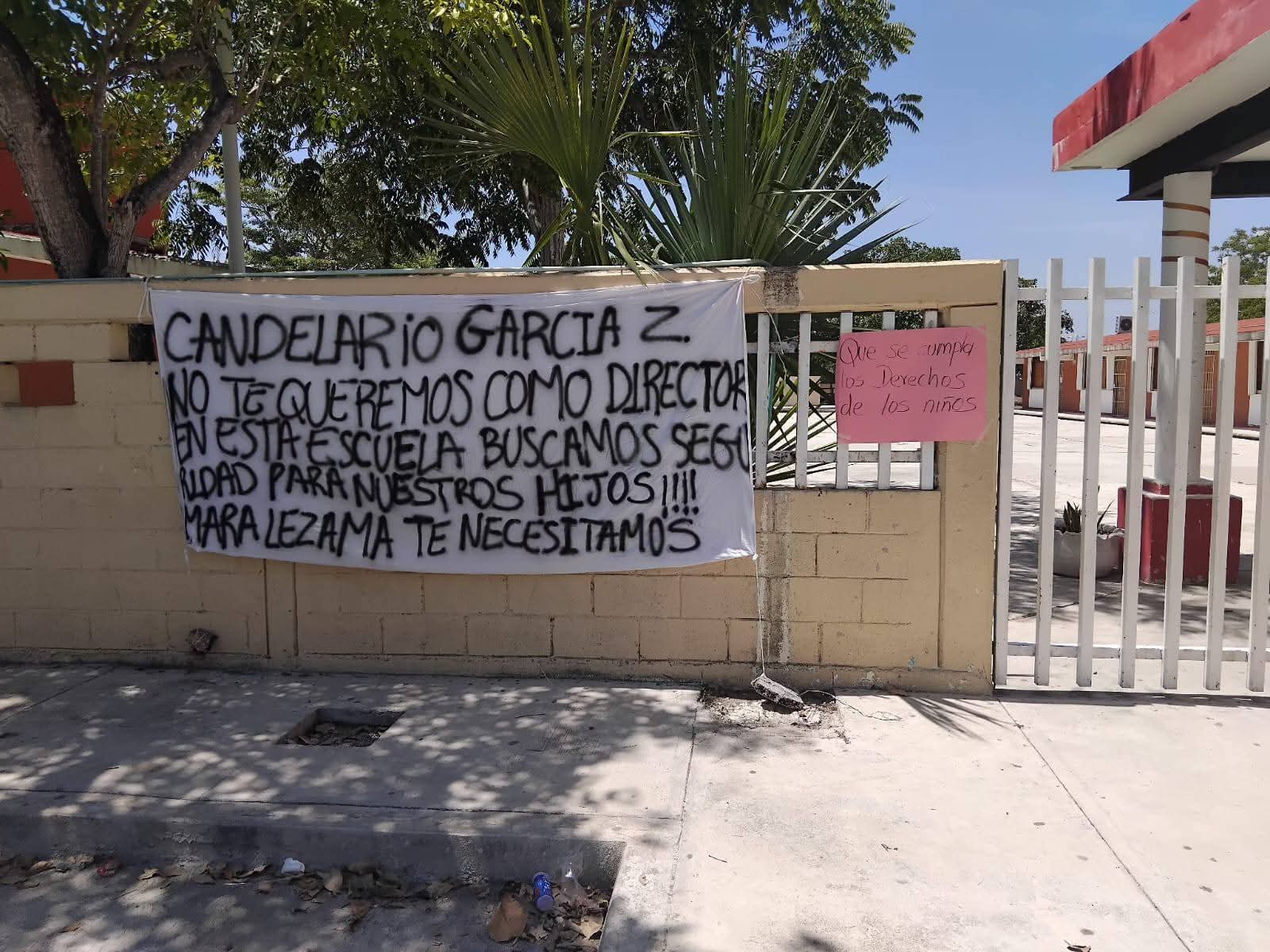 Playa del Carmen, a 04 de septiembre.- Padres de familia de la primaria “Beatriz Adriana Cupul”, ubicada en la colonia Nicte-Há, desde el lunes pasado realizaron un bloqueo en la entrada principal de la institución para exigir la destitución del director, el profesor Candelatio Garcia, acusado de abusos laborales y sexuales, sin embargo ante tales antecedentes fue designado como director de la citada escuela.