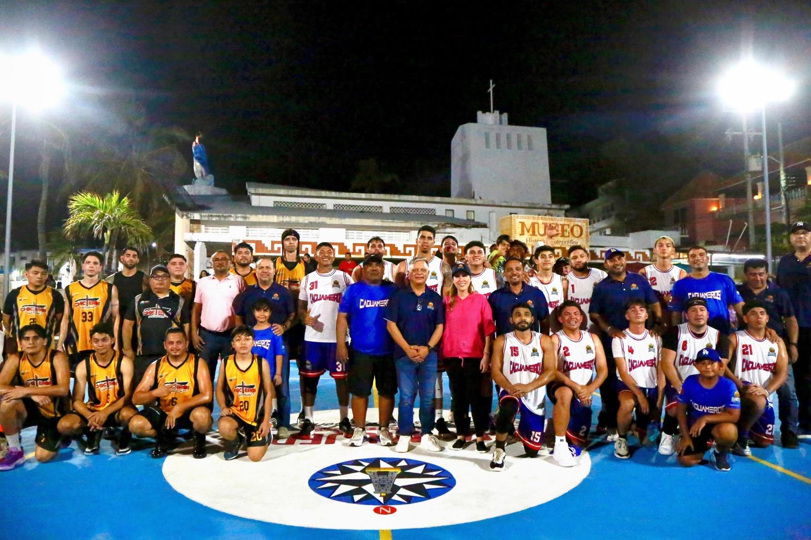 La cancha del Centro “José del Carmen Pastrana, un espacio que recientemente fue rehabilitado, vibró con las familias isleñas y visitantes, que se dieron cita para disfrutar del encuentro entre Caguameros, de Isla Mujeres y Chicleros, de Lázaro Cárdenas”.