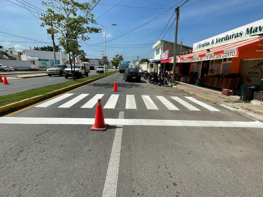 También como parte del plan Ko’ox, el Gobierno del Estado lleva a cabo labores de balizamiento y pintura de pasos peatonales, como los que esta semana que concluye se realizó sobre la avenida López Mateos, mejorando la seguridad para los alumnos y peatones de la zona.
