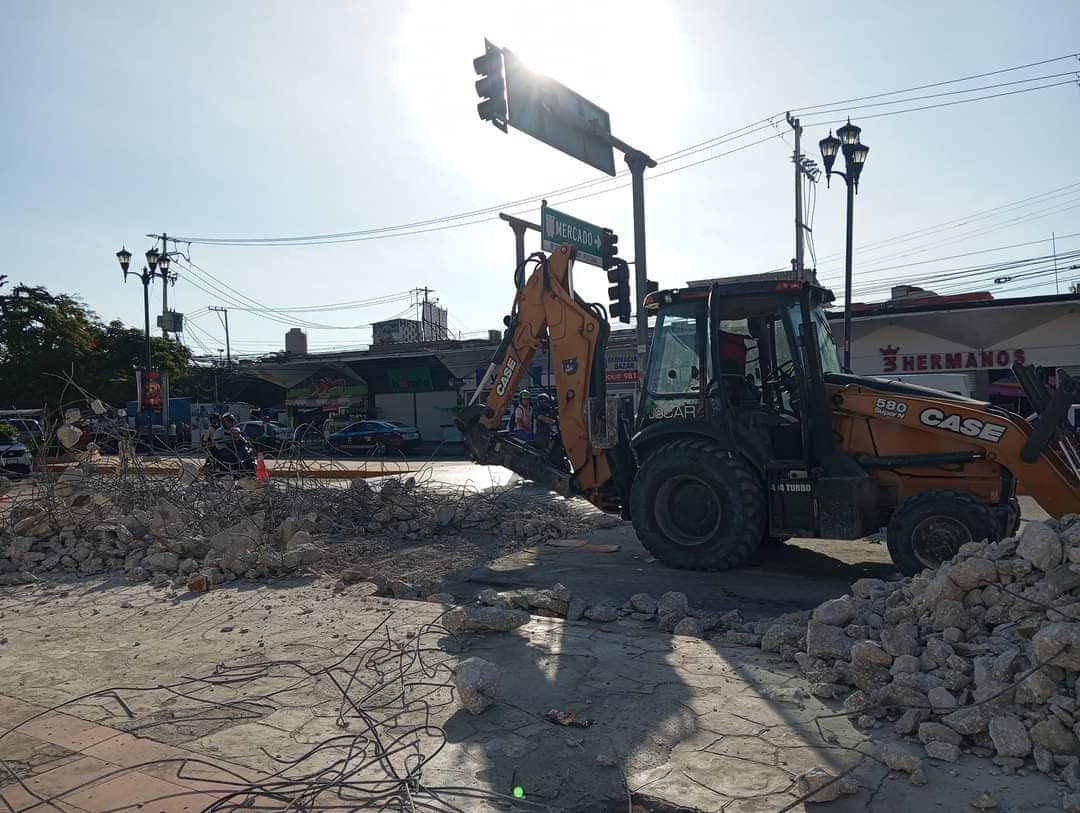 Continúan los Trabajos para Ko’ox; Rompen Pasos Peatonales Frente al Mercado