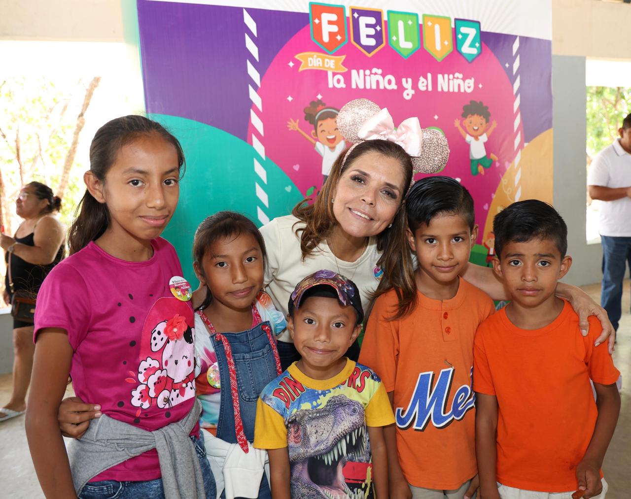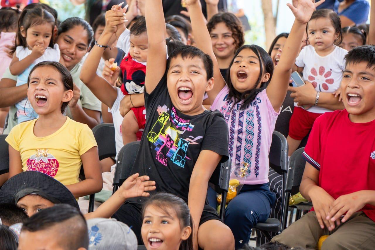 La gobernadora Mara Lezama convivió con niñas y niños, organizó la rifa de regalos, concursos, bailes y cantos.