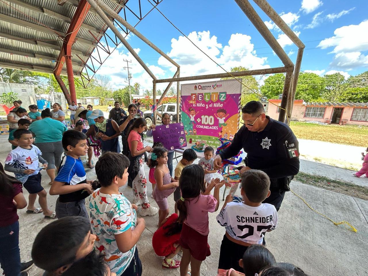 La presidenta honoraria del DIF Quintana Roo precisó que en las 100 comunidades se llevaron a cabo actividades lúdicas y reflexivas, para que las niñas y niños fortalezcan sus derechos, pero también para que se diviertan, sean felices y convivan en familia.