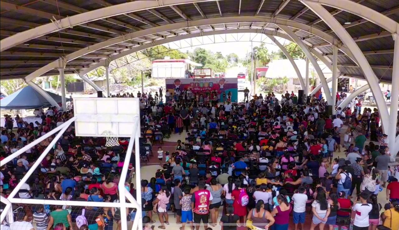 En Señor más de mil niñas y niños dieron rienda suelta a su alegría y diversión en el domo del poblado, a quienes Mara Lezama les pidió que sean felices y digan no a conductas autodestructivas.
