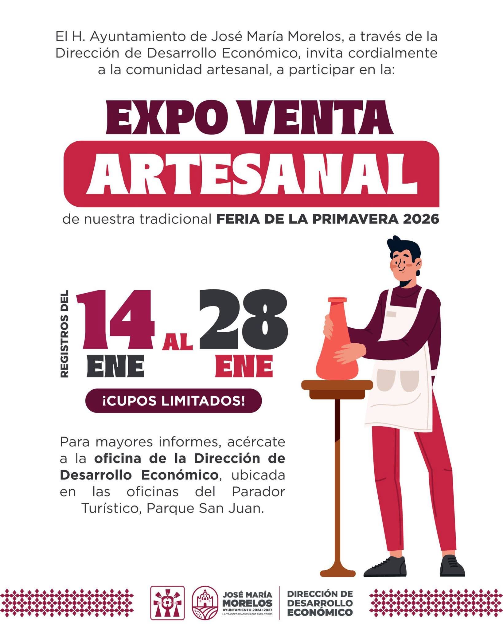 José María Morelos, 18 de enero .- Los artesanos de José María Morelos tendrán un espacio exclusivo para comercializar y exhibir sus productos durante la Feria de la Primavera 2026, tras la apertura de la convocatoria oficial para integrar la Expo Venta Artesanal, uno de los escaparates económicos y culturales más relevantes del municipio.