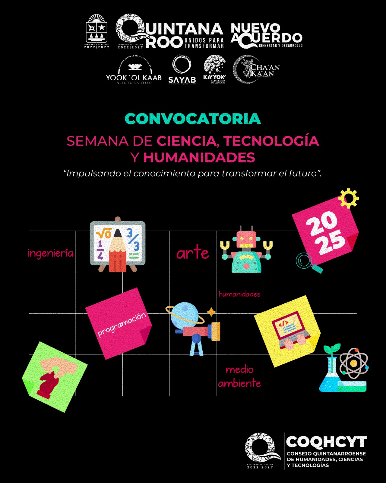 Chetumal.- Con el propósito de fomentar la creación de espacios de diálogo, aprendizaje e innovación, el Consejo Quintanarroense de Humanidades, Ciencias y Tecnologías (COQHCYT) que encabeza Cristopher Malpica Morales, convoca a los clubes de ciencia del estado a sumarse a la “Semana Estatal de la Ciencia, Tecnologías y Humanidades 2025”.