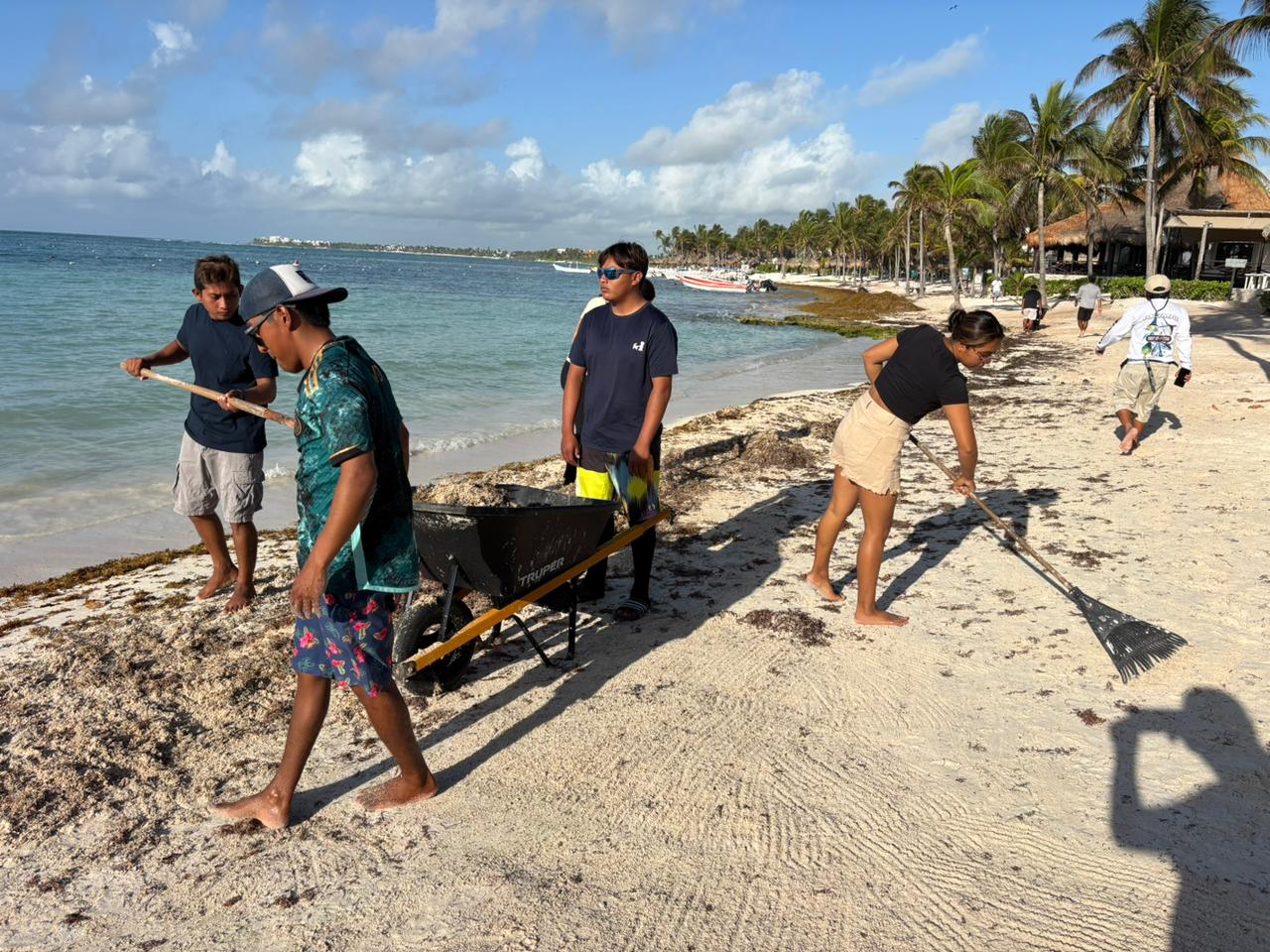 La iniciativa contó con la participación conjunta de prestadores de servicios náuticos, hoteleros, personal de la Zona Federal Marítimo Terrestre (Zofemat), personal de la Conanp y voluntarios, quienes desde temprana hora se dieron cita para retirar toneladas de sargazo acumulado en la arena, con el objetivo de mantener las playas limpias y aptas para el turismo.