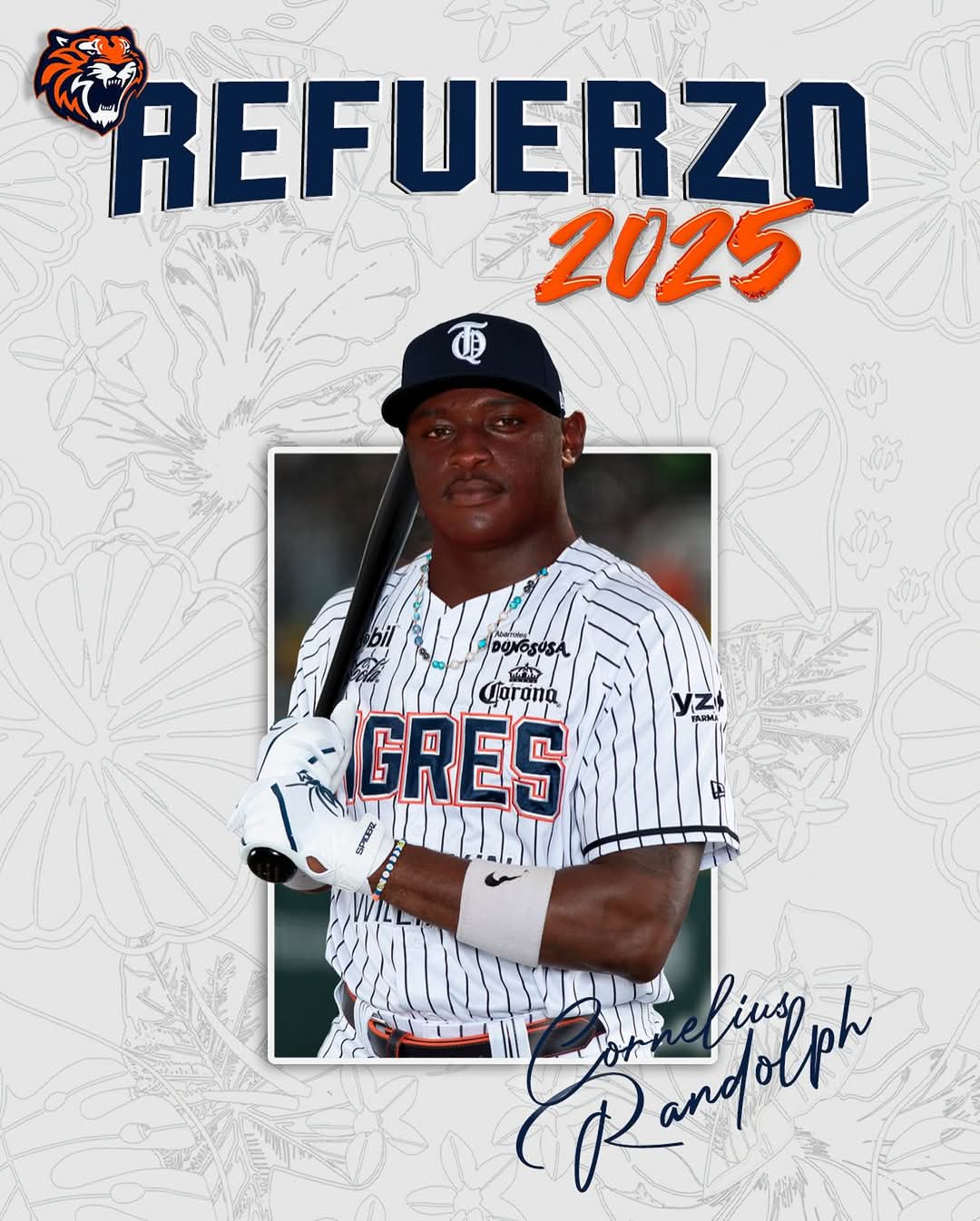 Ahora, Cornelius Cleopatrick Randolph, llegará a los Tigres, para convertirse en uno de los jardineros del equipo que dirigirá CJ Retherford y que arrancará la Temporada 2025 de la LMB visitando del 18 al 20 de abril a los Piratas de Campeche.