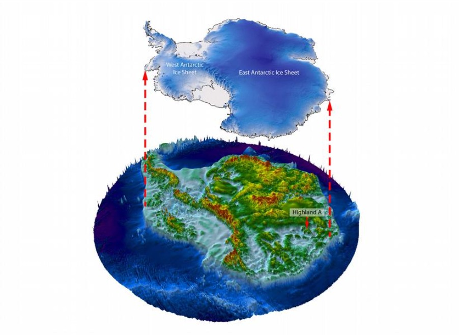 La imagen presentada revela que, si la Antártida pierde algún día todo el hielo que la cubre, equivalente a 27 millones de kilómetros cúbicos, se revelarían antiguas formaciones geográficas ocultas como fiordos, valles, llanuras, cuencas, montañas y se formarían lagos o islas. Pero este extenso continente no siempre estuvo cubierto por esta grande y gruesa capa de hielo. La Antártida esconde una tierra que alguna vez tuvo mucha más vida y probablemente fue hábitat para muchas especies prehistóricas.