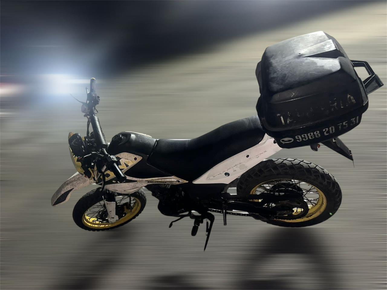 Una motocicleta Italika amarilla y blanca sin placas, 11,360 pesos en efectivo, 100 dólares estadounidenses, un teléfono celular, y contenedores utilizados para almacenamiento.