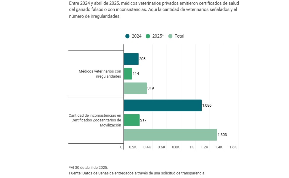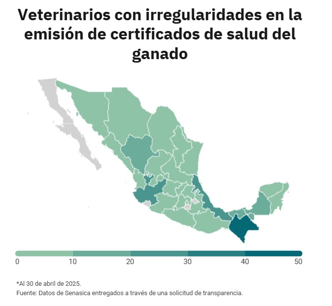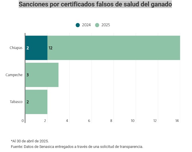 De 2024 a abril de 2025, la Dirección General de Inspección Fitozoosanitaria detectó a 11 veterinarios particulares que emitieron certificados apócrifos en tres estados: Chiapas, Tabasco y Campeche.