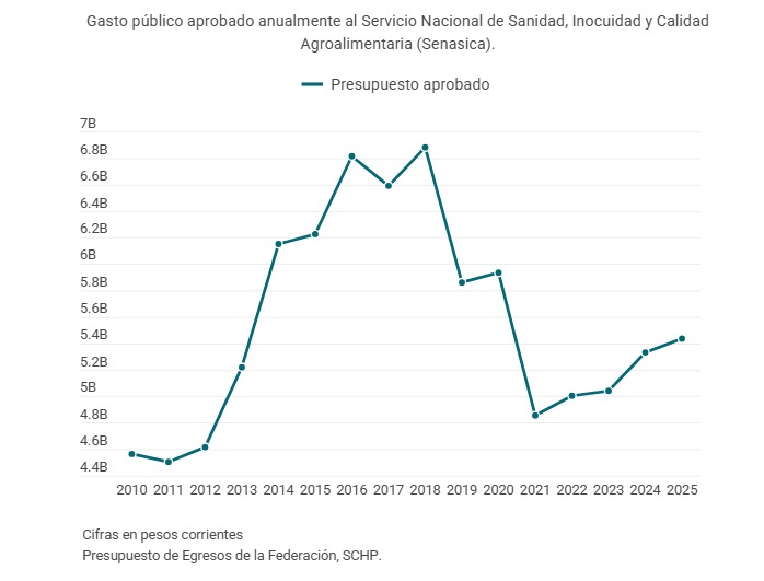 Para el funcionario, el recorte presupuestal aplicado a Senasica en años pasados tiene relación con esta problemática, pues llevó a la disminución del personal de la institución mientras crecían las autorizaciones de terceros privados.