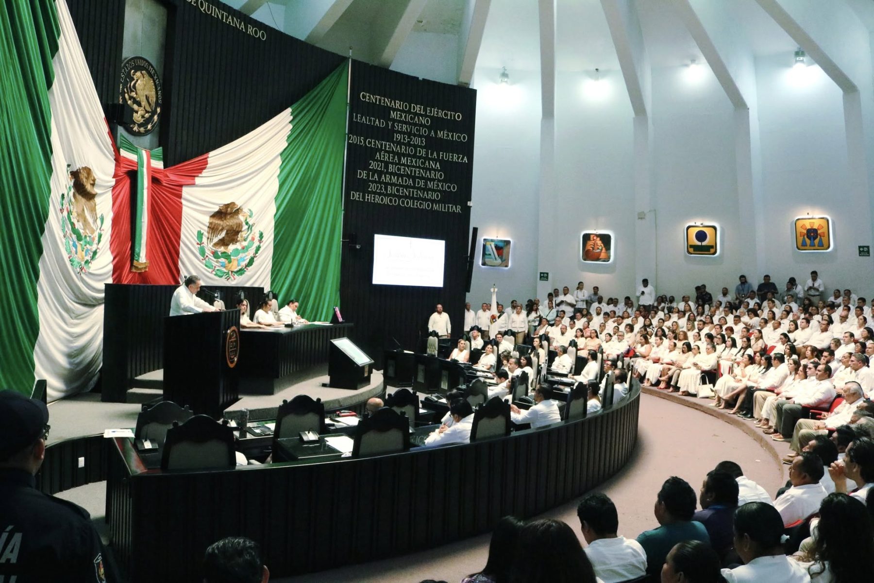 Después, tocó el turno al Partido Verde Ecologista de México (PVEM) en voz del diputado Renán Sánchez Tajonar, quien destacó como resultados del actual gobierno que más de 177 mil quintanarroenses salieron de la pobreza en los últimos dos años, y que este año se destinaron 2mil 300 millones de pesos en obra pública de carreteras, escuelas, hospitales, parques, agua y alumbrado público.