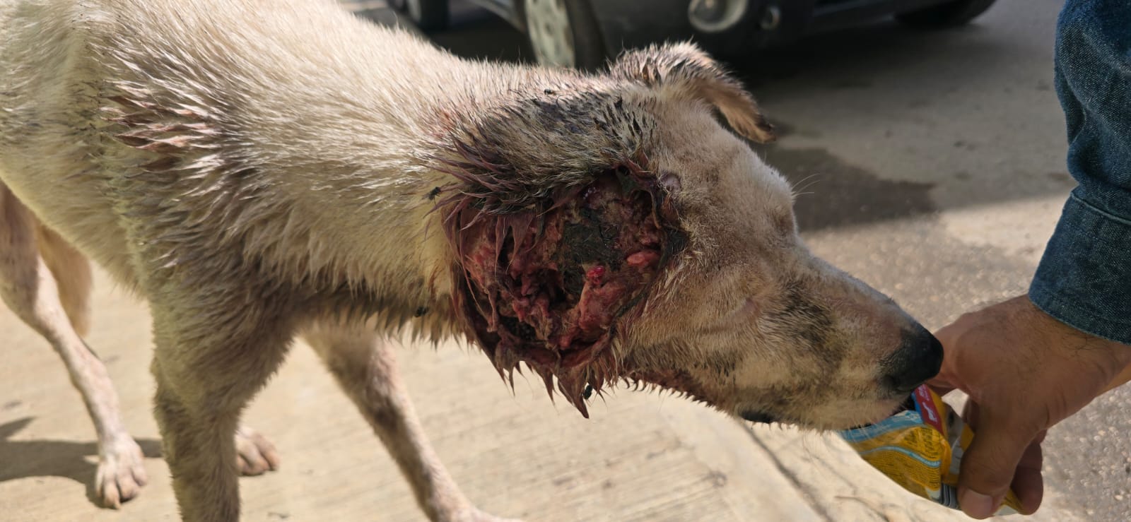 Vecinos intentaron auxiliar al perro dándole alimento y notificaron a las autoridades para que intervinieran, ante la alta probabilidad de que el animal tenga que ser sacrificado debido al nivel de daño, consecuencia directa de la falta de atención oportuna.