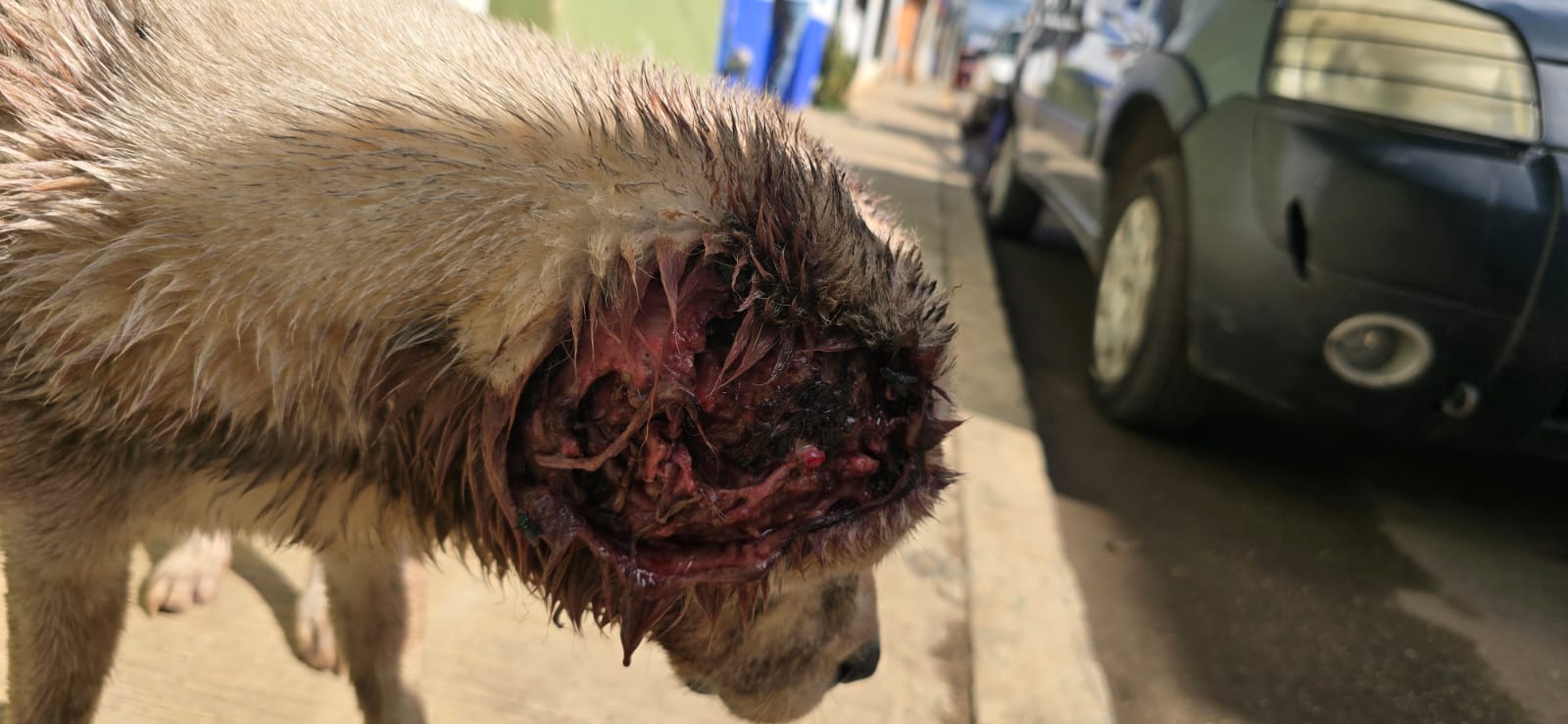 De acuerdo con testimonios ciudadanos, el canino deambulaba por la vía pública con una lesión avanzada, compatible con miasis, una condición provocada por larvas que se alojan en heridas sin atención, acelerando el sufrimiento y el deterioro físico del animal.